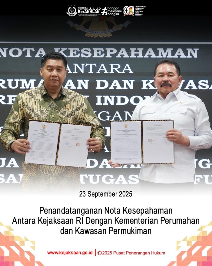 Kerja sama ini menjadi tindak lanjut dari pendampingan hukum terhadap program penyediaan lahan dan perumahan rakyat oleh Kementerian PKP.Jakarta, Selasa (23/9/2025).