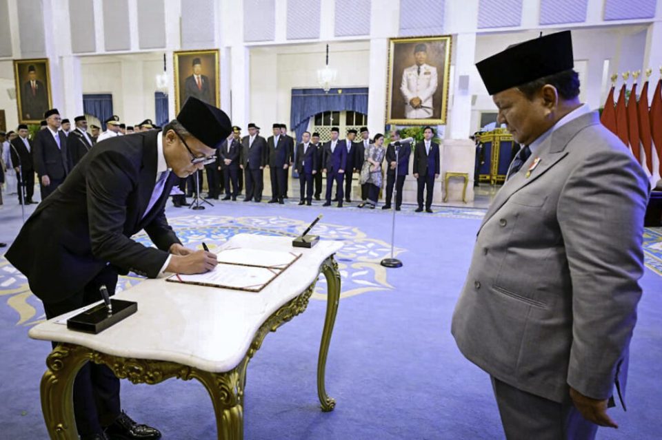 Regalia News – Presiden Republik Indonesia Prabowo Subianto melantik Kepala dan Wakil Kepala Badan Pengaturan Badan Usaha Milik Negara (BP BUMN) di Istana Negara, Jakarta, Rabu (8/10/2025).