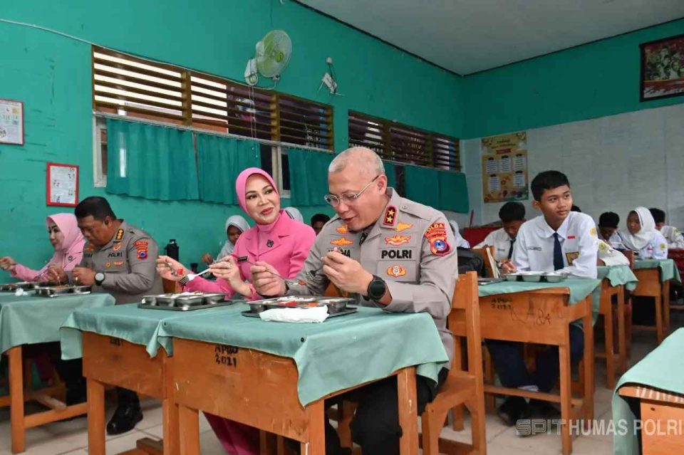 Untuk memastikan keamanan dan kebersihan makanan, Kapolda Kalsel Irjen Pol Rosyanto Yudha Hermawan bersama Ketua Bhayangkari Daerah Kalsel, Irwasda, Pejabat Utama Polda, dan Wali Kota Banjarbaru turut hadir dan makan siang bersama para siswa. Selasa (21/10/2025).