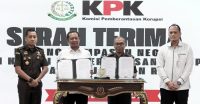 Presiden Prabowo disambut para menteri Kabinet Merah Putih, Gubernur Jawa Barat Dedi Mulyadi, serta Kepala SMPN 4 Kota Bekasi Sungkawati.