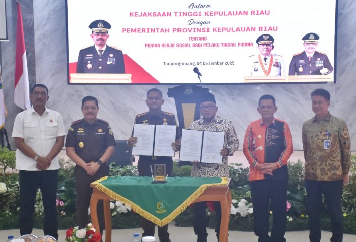 Perjanjian Kerja Sama (PKS) antara pemerintah kabupaten/kota se-Kepri dengan Kejaksaan Negeri masing-masing. Kegiatan berlangsung di Aula Sasana Baharudin Lopa, Kejaksaan Tinggi Kepri, Senggarang, Tanjungpinang, Kamis (4/12/2025).