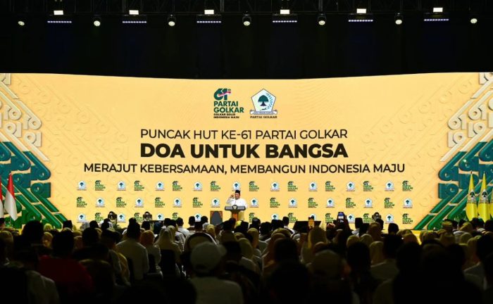 Regalia News – Presiden Prabowo Subianto menghadiri puncak peringatan Hari Ulang Tahun (HUT) ke-61 Partai Golkar yang mengusung tema “Doa untuk Bangsa” di Istora Senayan, Jakarta, Jumat (5/12/2025).