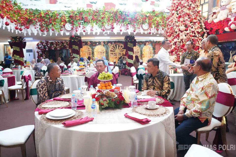 Kapolri menyambut para tamu dengan penuh keakraban, menciptakan suasana yang hangat dan terbuka bagi seluruh undangan yang hadir.Kamis (25/12/2025).