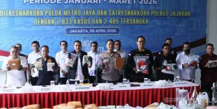 Regalia News – Polda Metro Jaya melalui Direktorat Reserse Narkoba mengungkap 1.833 kasus peredaran dan penyalahgunaan narkotika sepanjang Januari hingga Maret 2026.