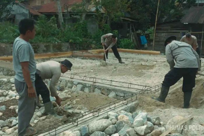 Regalia News – Personel Batalyon C Satuan Brimob Kepolisian Daerah Sumatra Utara membangun rumah swadaya bagi warga terdampak bencana banjir dan longsor di Desa Tolang Julu, Kecamatan Sayur Matinggi, Kabupaten Tapanuli Selatan.