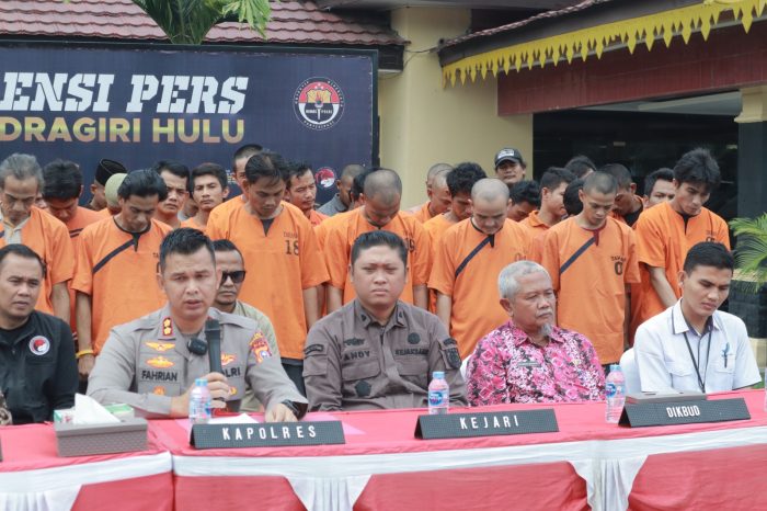 Regalia News – Jajaran Polres Indragiri Hulu (Inhu) berhasil membekuk sebanyak 63 tersangka selama pelaksanaan Operasi Antik Lancang Kuning (LK) 2025. Dari jumlah tersebut, 62 tersangka berjenis kelamin laki-laki dan satu perempuan.